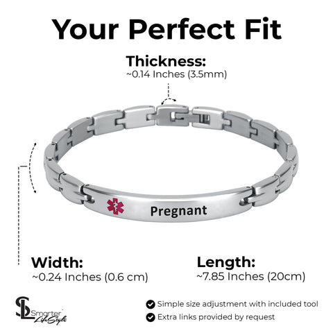 Elegant Surgical Grade Steel Medical Alert ID Bracelet For Men and Women (Women's, Pregnant)