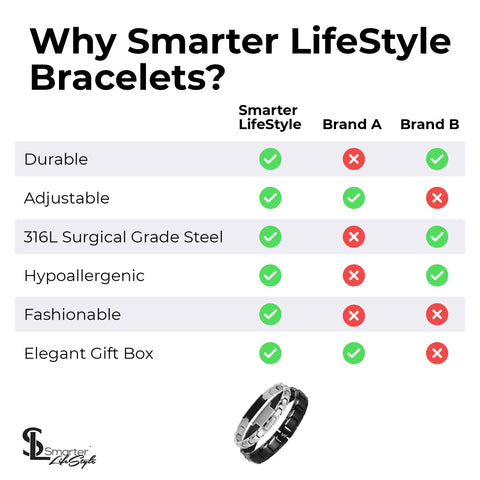 SURGICAL GRADE STEEL: Handcrafted with true 316L Steel. Not the cheap stuff found in many other bracelets. Polished finish that will not crack, peel, fade, rust, stain or corrode. Often used in surgical equipment and certain medical implants. Strong clasp stays secure and is still easy to use and remove.